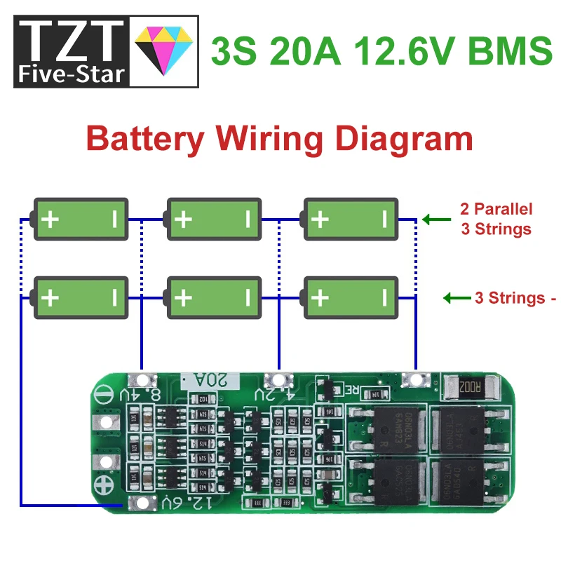 3S 20A 12 6V 18650 Li ion Lithium battery protection and charger BMS