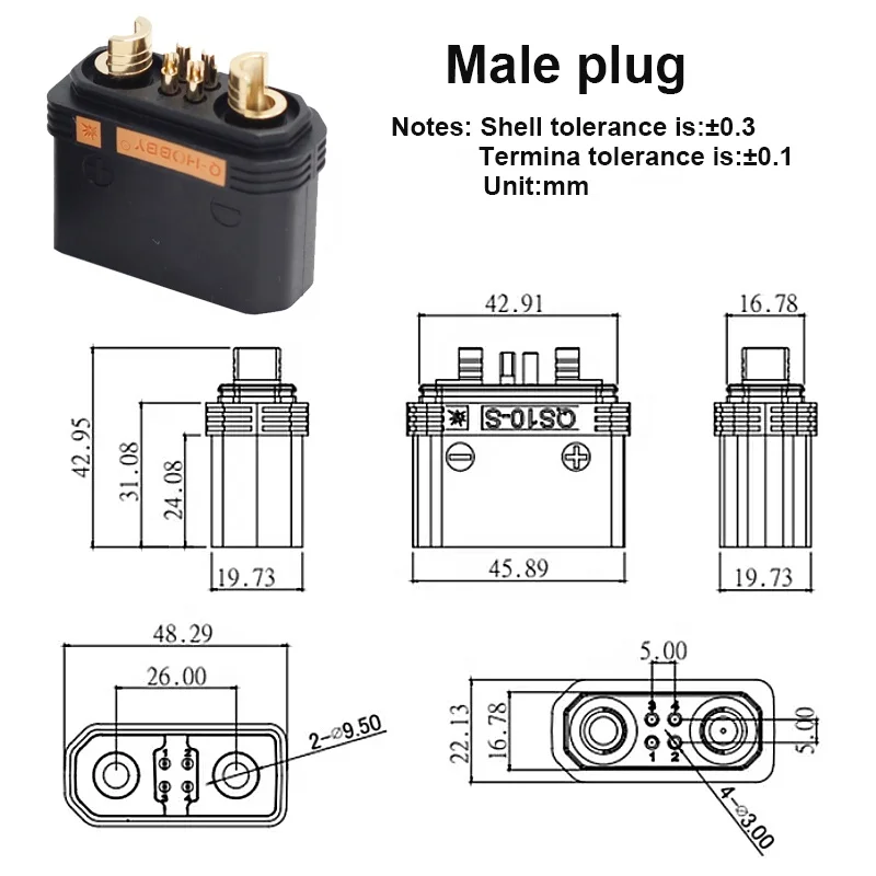 QS10P L Anti Spark Connector 210A Energy Storage Connector Large