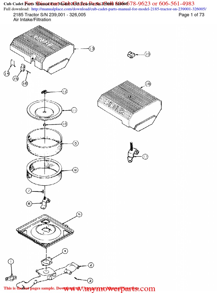Cub Cadet Parts Manual For Model 2185 Tractor Sn 239001 326005