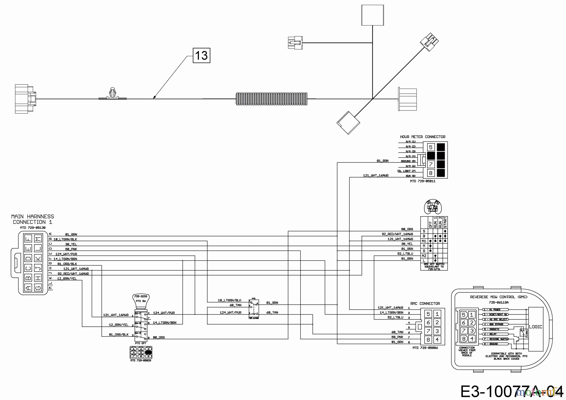 Cub Cadet Lawn tractors XT2 PR106IE 13BZA1CR603 2018 Main wiring