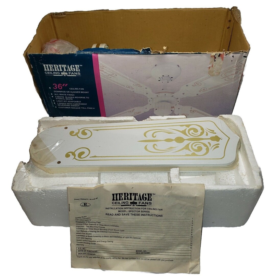Vintage HERITAGE Ceiling Fan White Gold Stencil Blades Etsy