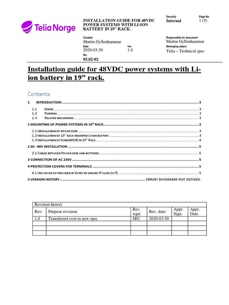 05 02 02 Installation Guide For 48VDC Power Systems With Li Ion