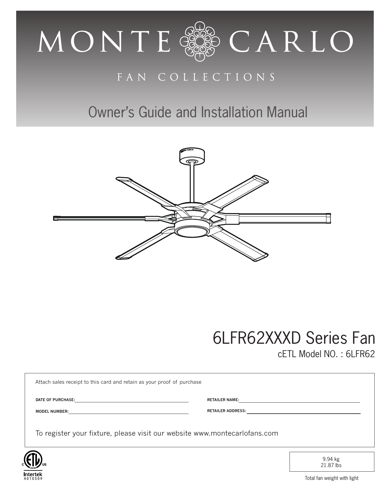 Monte Carlo Ceiling Fan Manual