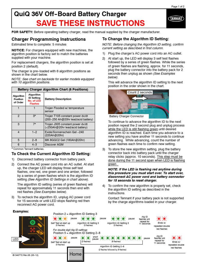 Save These Instructions Quiq 36V Off Board Battery Charger PDF