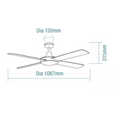 Martec Ceiling Fan DC 1300mm White Fan with Motor amp Remote DLDC134WR
